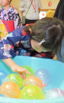 『ごくごくコーナー』『もぐもぐコーナー』『わくわくコーナー』でジュースやベビーカステラを買ったり、ヨーヨー釣りを楽しみました♪ |